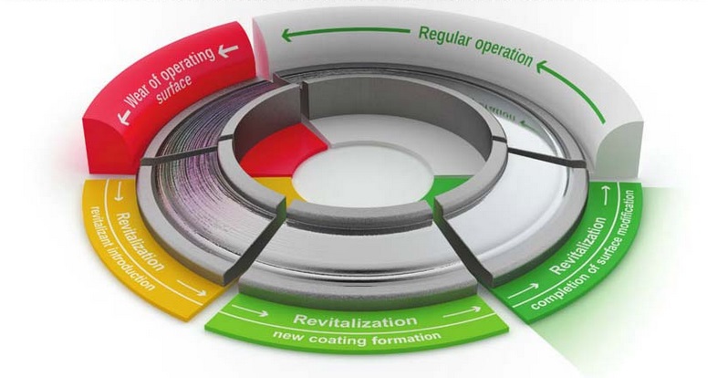 След няколко минути на действие на процеса ревитализация, металокерамичната основа се формира върху износената повърхност. Благодарение на нея, хлабината в механизма се отстранява. Отделената енергия намалява и съответно нарастването на нова обвивка се прекратява. Едновременно протича дифузия между метала и металокерамичната основа, на практика това е последният етап от процеса на образуване на новата обвивка.