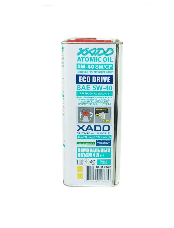 XADO Atomic Oil 5W-40 SM/CF е всесезонно синтетично моторно масло с дълъг експлоатационен живот.