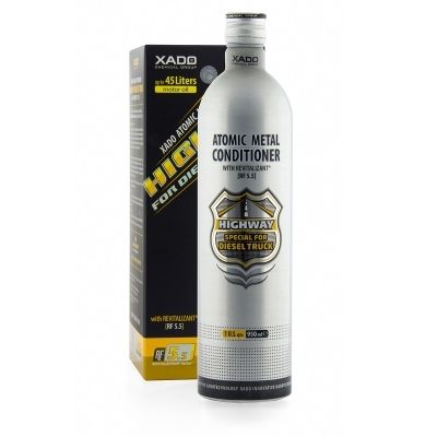 XADO HighWay за дизелов камион е иновативен 3-компонентен продукт от ново поколение, който комбинира предимствата на двуфазов сложен метален кондиционер и нанокомпонент REVITALIZANT® (RF = 5,5) *.