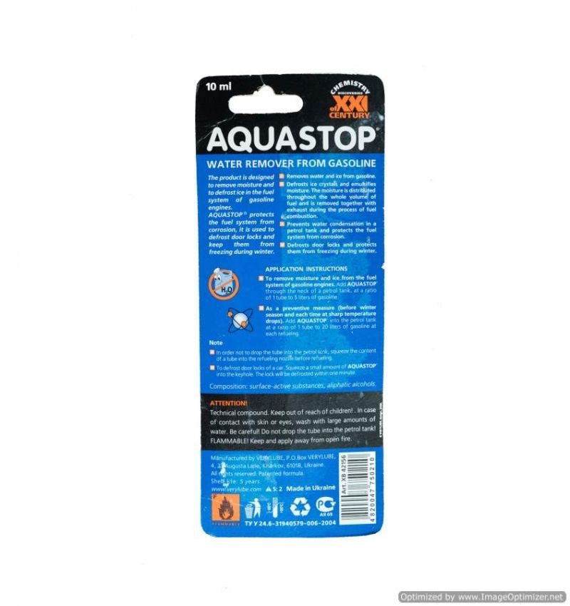 Аквастоп трябва да е на стайна температура преди употреба. 1. При минимално количество бензин изсипете съдържанието на 1 тубичка Аквастоп. 2.Заредете 20 л. бензин. 2.Преминете към нормален режим на работа на автомобила.