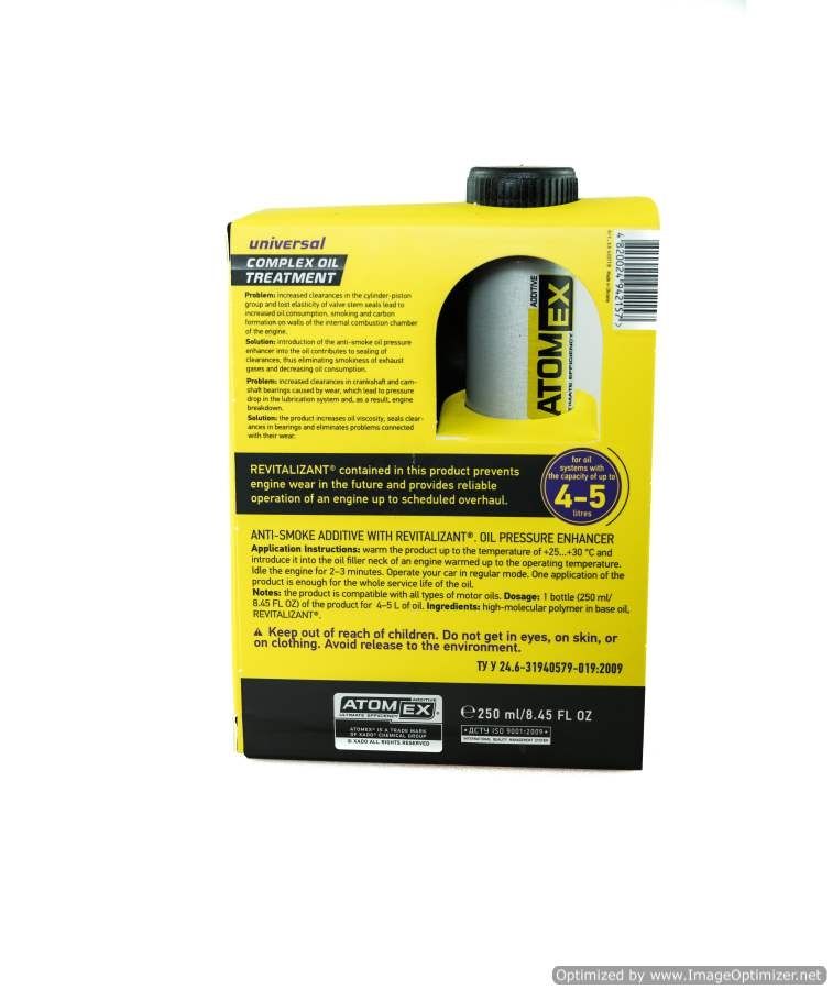 ATOMEX Complex Oil Treatment е напълно синтетичен продукт, полимерен сгъстител, който повишава вискозитета на маслото и осигурява създаването на защитен резерв на двигателя.