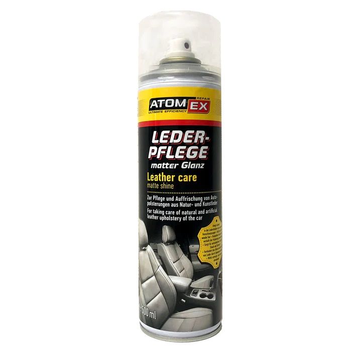 Atomex Leather Care е предназначен за почистване и освежаване на естествена и изкуствена кожа ( съдържа рициново масло ).