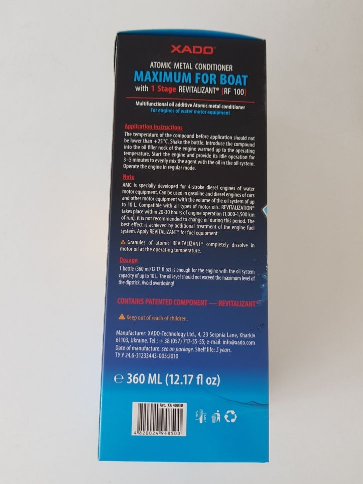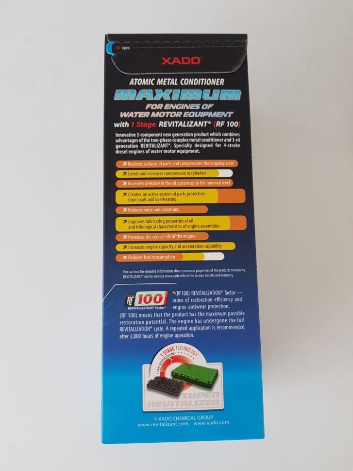 Съдържа ревитализант и атомарен кондиционер на метала. Специално разработен за обработка на четиритактови силови двигатели с обем на маслената система до 10л. Атомарният кондиционер улеснява триенето в системата, а ревитализанта възстановява износванията по двигателите на лодки, яхти, джетове, катамарани и друга водна техника. След обработка с АМС Maximum, двигателите са защитени от износване и значително се увеличава ресурса им.