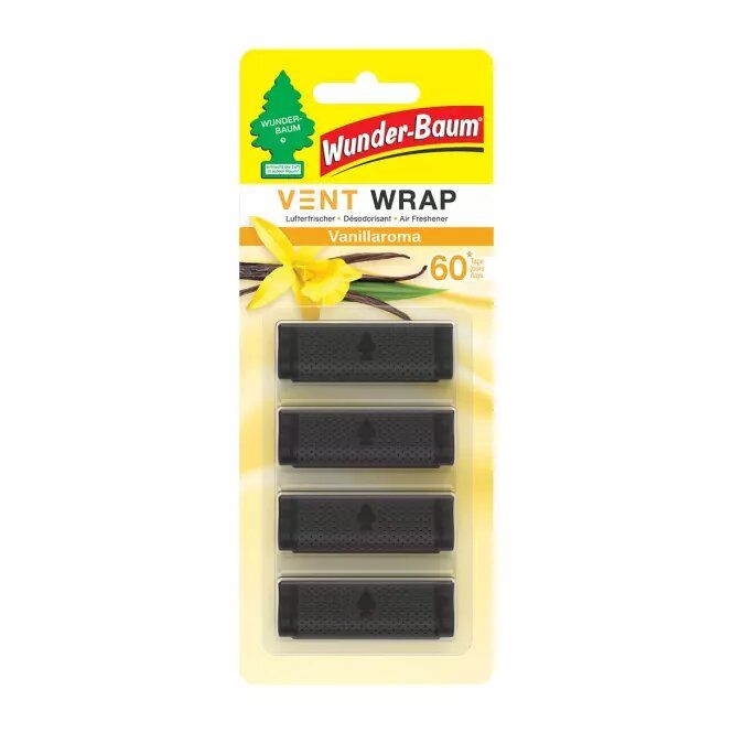 - Ароматизатор Vent Wrap се предлага в три аромата, сред които VANILLAROMA, NEW CAR и BLACK ICE;