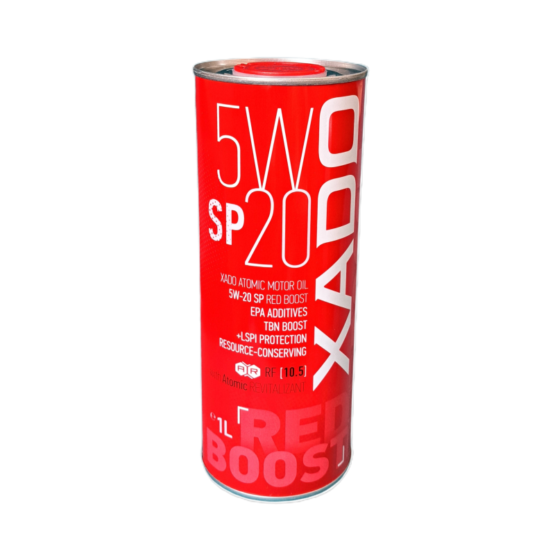 - XADO Red Boost Oil 5W-20 SP има висока термична стабилност и осигурява надеждно смазване на детайлите на двигателя при тежки условия на работа, при високи температури и натоварвания;