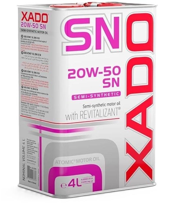 - XADO Atomic Oil 20W-50 SN Luxury drive е универсално моторно масло за бензинови, LPG и дизелови двигатели на леки и товарни автомобили;